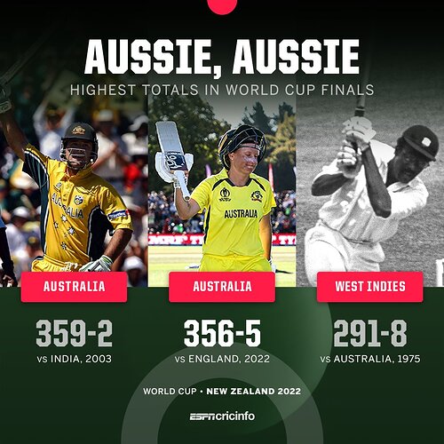 356 is not like a… normal score to get in a one-day international. It’s kind of an absurd score, led by Alyssa Healy’s 170 not out. Watched this one live just marveling at the batting clinic on display, the bowlers were swearing at each other, the fielders, the ground… Healy did this shot that was like, she falls on her stomach while also hitting the ball over her shoulder to the boundary for 4 runs. She did it like 5 times through the course of the innings. She also kept dancing like 2 feet backwards right before the bowler delivered the ball, as if to say, “Here’s the wicket now hit it!” They did not hit it. By the end she just seemed like she was taking risks for the hell of it, like when you score 70 on the CPU in Madden so you just start running Shotgun All Streaks and blitzing every play.