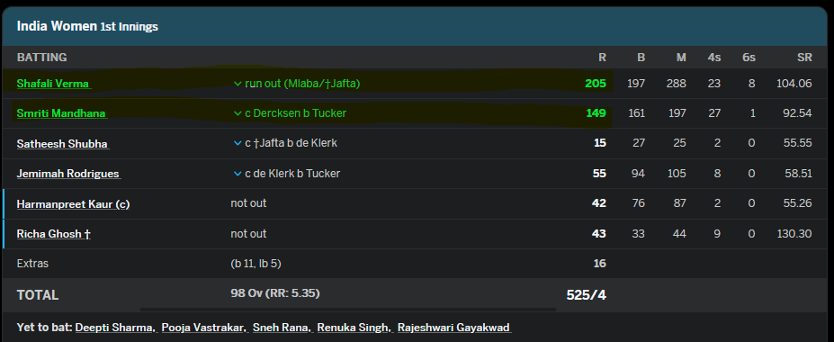 ok so while the T20 World Cup is going on - India dismantled England to go on to the final vs. South Africa, Saturday 10:30am ET - the women cricketers are playing a Test match