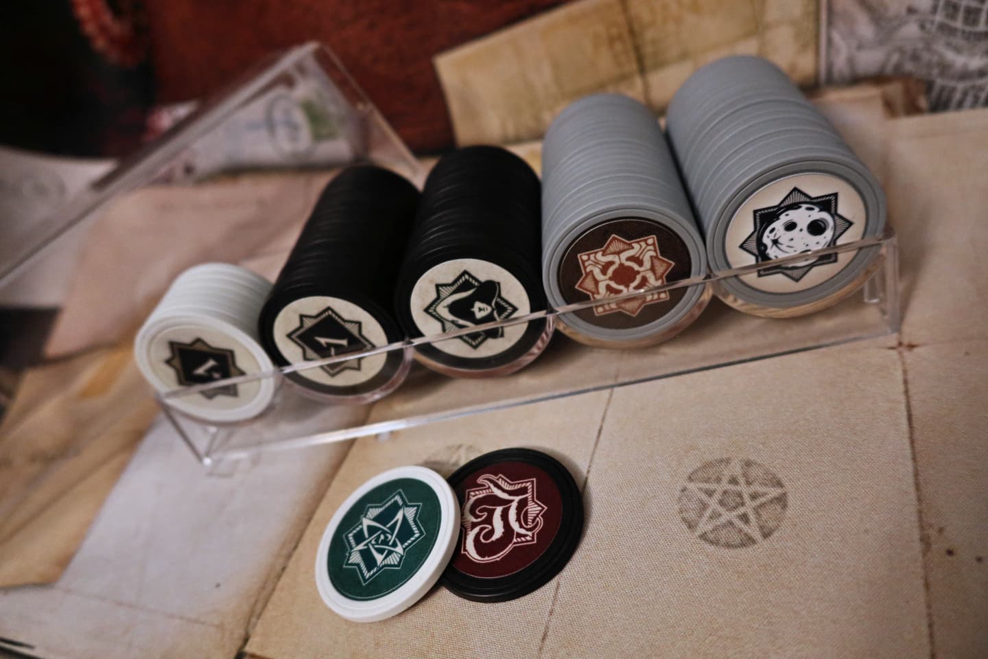 A few weeks ago, I saw someone on a Discord server offering custom poker chips to use as chaos tokens for Arkham Horror: The Card Game when playing specific fan-made campaigns. (The Bloodborne campaign I mentioned above, for example, calls for special tokens.)