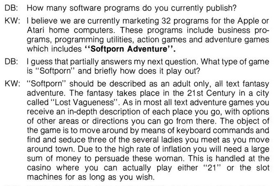 other main thing i associate with sierra are their early attempts at a kind of swinger-themed branding with “softporn adventure”, ken williams on which below: