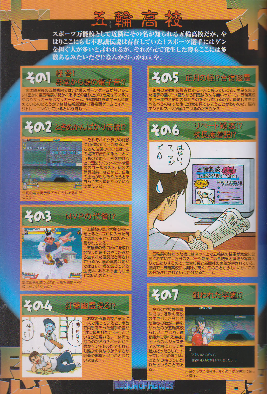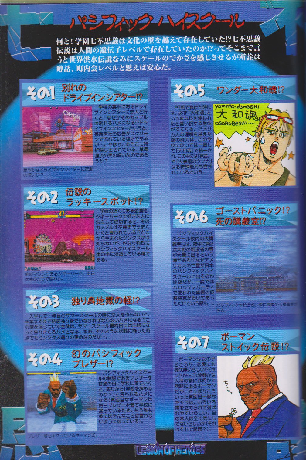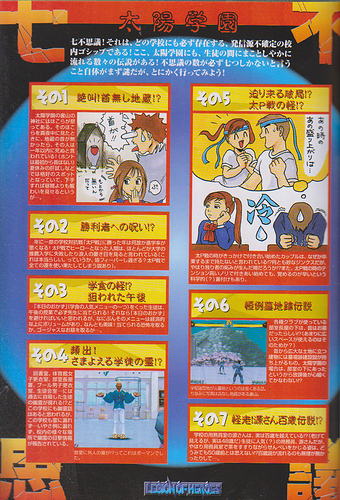 paragraph on top of page: The Seven Wonders! Almost every school has their own urban legends that circulate among the students, and Taiyo High is no exception! Why the number is always seven is in itself a mystery, but anyway, let’s take a look!