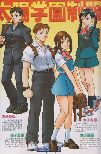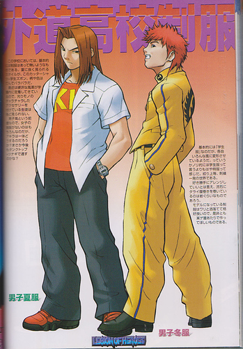 The base design is the most typical style of high school uniform there is. The emblem on the collar is its defining feature. The choice of shoes is up to the individual student. Kyosuke’s prized white gakuran is thought to be a uniquely made-to-order item.