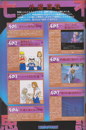 so i recently got a rival schools issue of gamest ex, full of delicious rival schools lore. of course, it is all in japanese, so i also commisioned a friend on tumblr to translate some bits of it. and, because a thread will make for convenient reading than a bunch of images and a textfile, here those bits are~