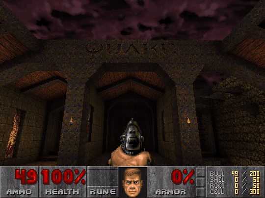 I am also playing the recent Quake Brutalism Jam packs (1) (2), which have some really really good modern Quake levels. It’s a fun set to explore because, in the case of the first one, the start map connects to 35 other maps. You can walk around this monolothic brutalist environment and pick a map to explore just like stopping to glance at a painting at a museum exhibit.