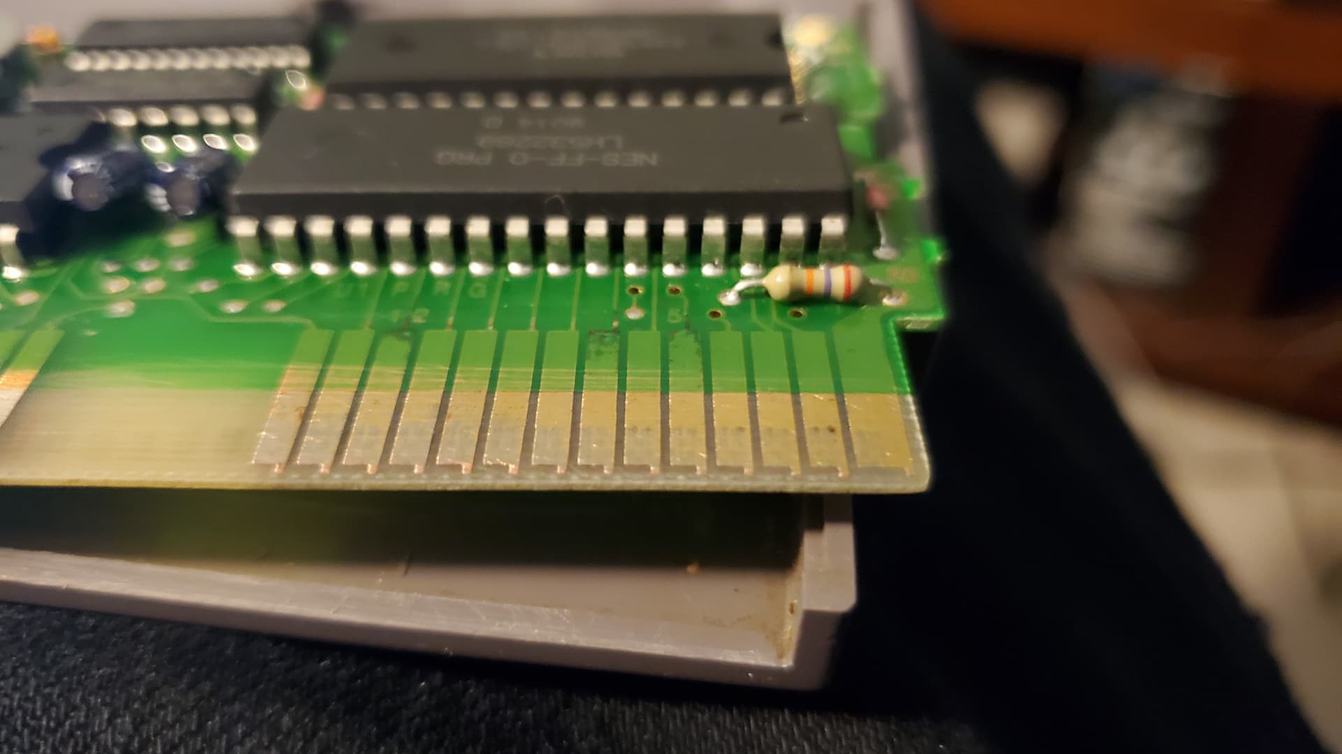 Would anyone care to comment on the state of this Final Fantasy NES cart? I have cleaned it with qtips and a magic eraser + checked the pins with multimeter. Still will not boot. Other games are working on the console. My next step is to try brass cleaner.