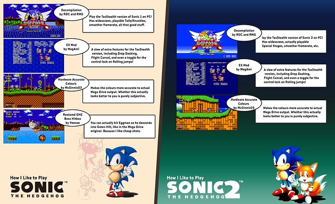 If anyone is interested those mobile remakes of Sonic 1 and 2 with widescreen and stuff by the Sonic Mania devs have been decompiled and fan ported to PC now. There’s even an improved PC version of Sonic CD and a completely new fan remake of Sonic 3 in a similar style.