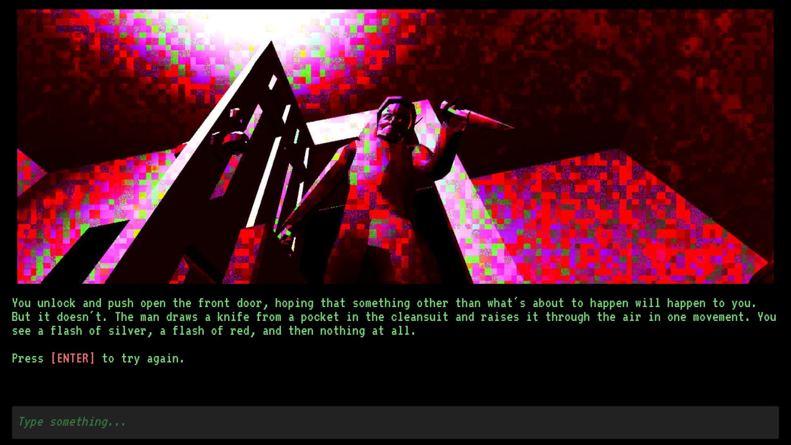 I’m not sure even if one went searching for every single ending it’d be possible to put more than an hour or so into Cleansuit, it is a very compact experience. I think that is to its strength though as this is a nice twist on the “killer trying to break into the house to kill you” motif that benefits from being text based as it pushes it more into the realm of figuring out what in the heck to do rather than have to worry much about actually executing it. It is short enough that failure isn’t much of a punishment and often teaches you something about how this overall puzzle fits together, and I found piecing it all together to be rather rewarding.