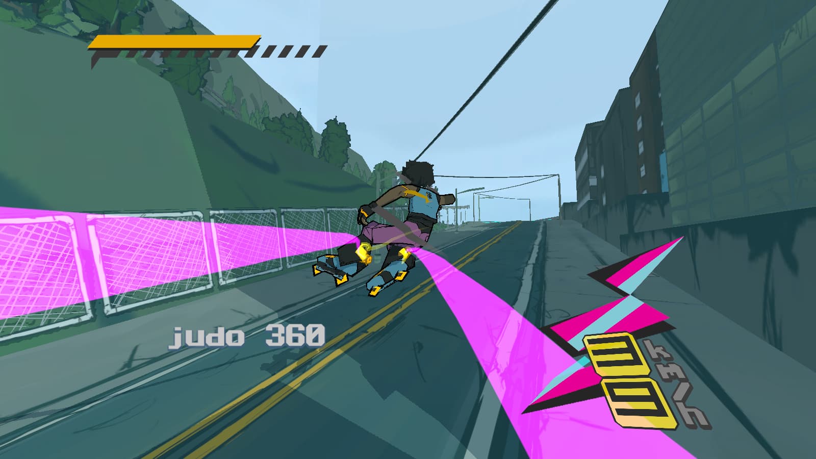 You start with the default “all arounder” skater plopped down in the middle of this chunk of city, a chunk that is fairly sizable without becoming unmanageably vast, where you can wander around until you come across one of the legion of graffiti spots (which is handled like a very basic rhythm game) or flashing icons that if ridden through while hitting accept will start a particular challenge. These challenges are mostly of the “pull of a combo while hitting all these marked locations”, “follow this path/other skater closely within the given time limit” or “land a combo of X number of points” in nature, I was left feeling they were a good bit easier than the ones in episode 1 but that could also be due to my increased familiarity with them.