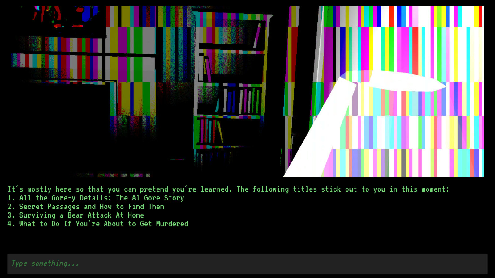 My overall thought is that it was neat enough to look at for ten minutes, and I was fine looking at it for those ten minutes. If it just looked like any other VN I would struggle to have written even this much and likely would have looked for another ten minute long game in hopes it was more interesting. Basically… go ASCII filter!