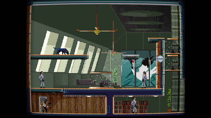 In these set of puzzles the main difference is that one half of the screen has a more pulled back view of the action than the other (also you can see the desaturated non-active double of a character in this screen). This seems like a rather insignificant change as how much of a difference could being able to see more of the stage at once mean? That’s not the important part, and I’ll give you all a chance to take a second to think about what this actually means.