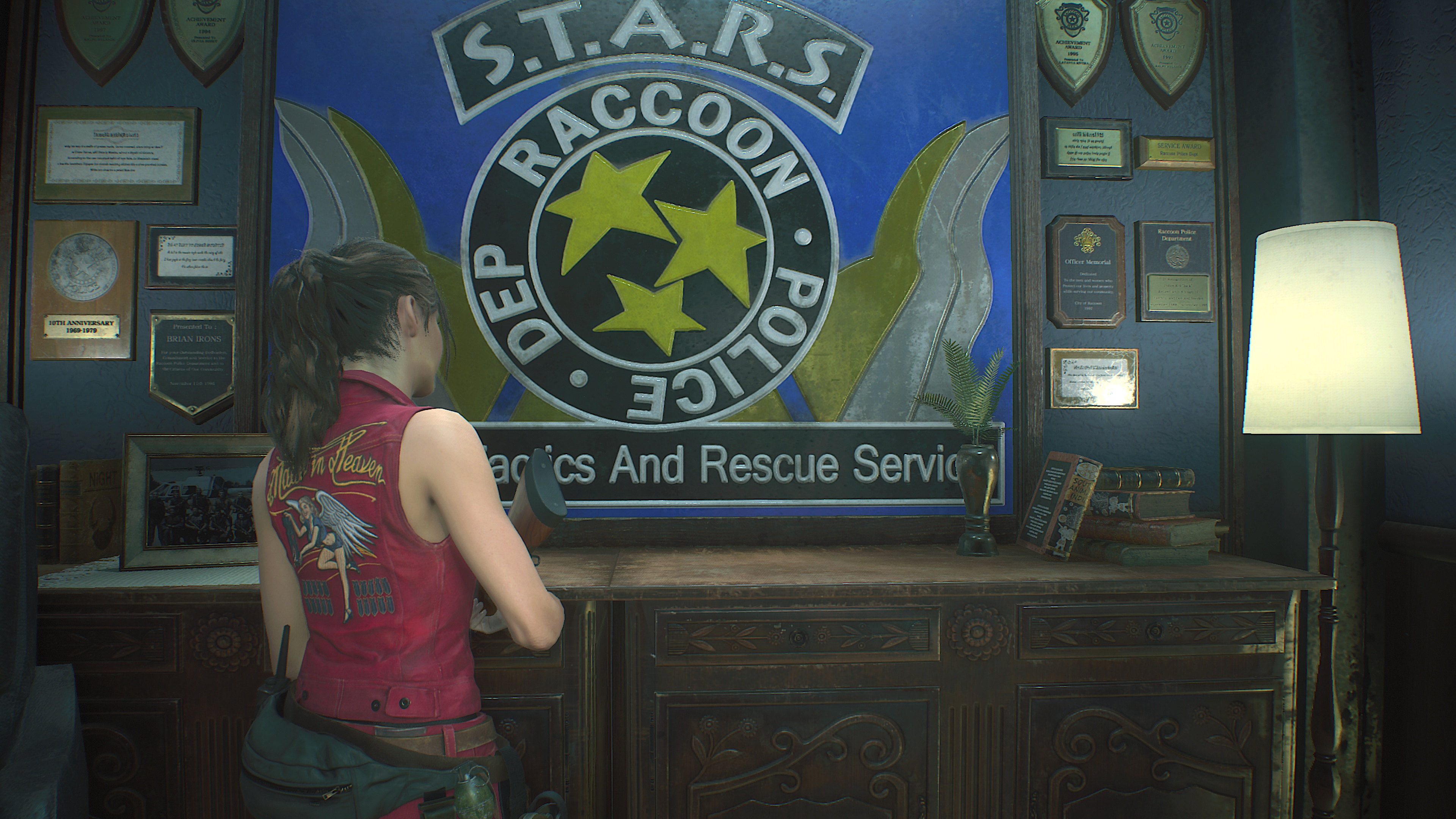 Well damn! Seems I kinda glossed over it in this corner, smaller and you can’t check it but still cool. Maybe on pc higher res the plaques could be read better, probably just general accolades.