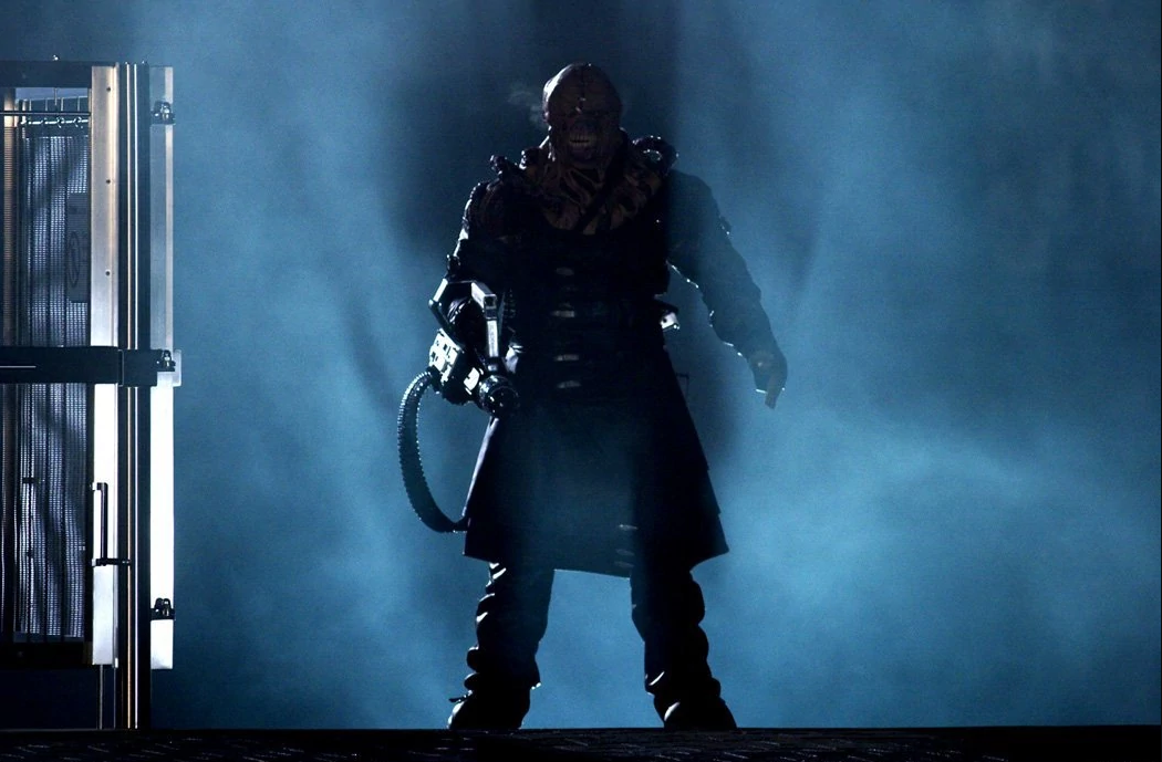 hiding from him in the RE2 police station now. when that motherfucker burst through a window with a ROCKET LAWNCHAIR i laughed, but also screamed