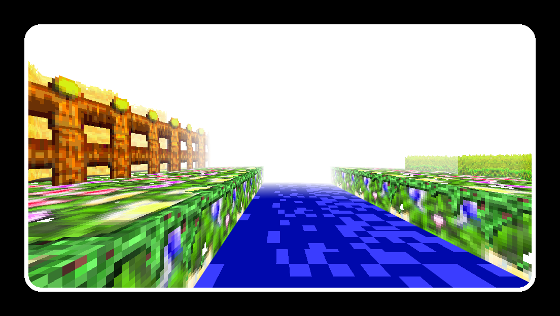 At the time I felt a bit sheepish about how the bricks look kinda screwy in the far distance, but as I’ve seen more games from the early-mid '80s in this style since I wrote this, I’ve realized that many of them have various graphical eccentricities of this sort, so perhaps it’s just getting into the spirit.