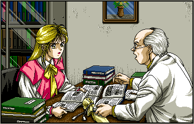 I just Vyvansed my way through this game this afternoon and there is so much to see. I should warn you, this is a PC-98 game, so there is some nudity, which I will try to spoiler tag. Thankfully nothing horrendously objectionable (good lord, the PC-98 has some Problematic Games), but yeah.