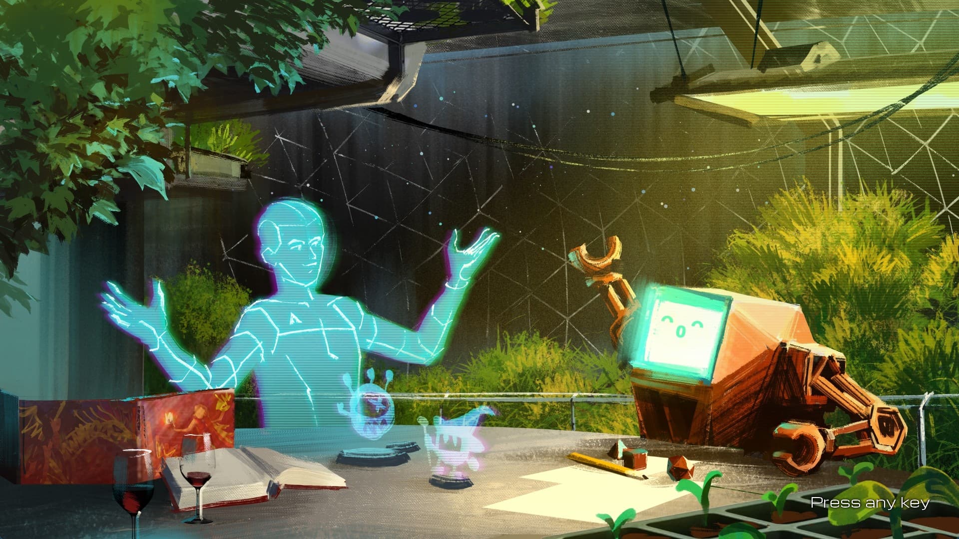 and i think they may have been smart and composited some stuff in - those little guys on the table are so cute and look like they were added later, to me. possibly even the hologram guy. but yeah i get the AI vibe from this too