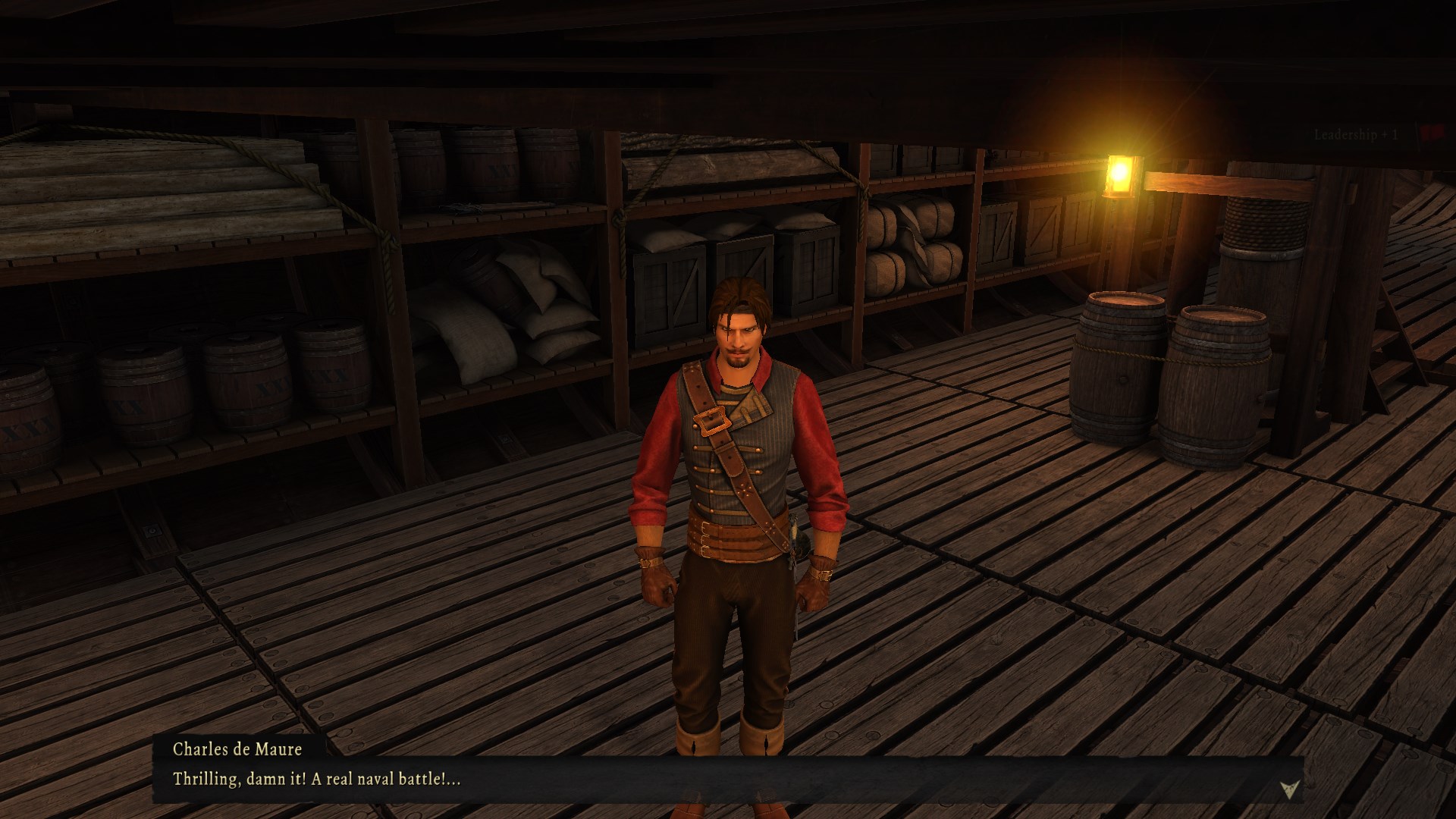 anyway you’re gonna go drink some wine with the captain who I think is implied to be fucking you over in some way based on letters you can find in his cabin but a ship attacks so he has the sailors take you to the cargo hold. and i’m not even kidding but charles gets really excited about the concept of a real naval battle so much that he starts hallucinating an elaborate one in his mind palace so you can be tutorialized