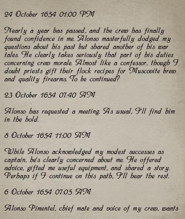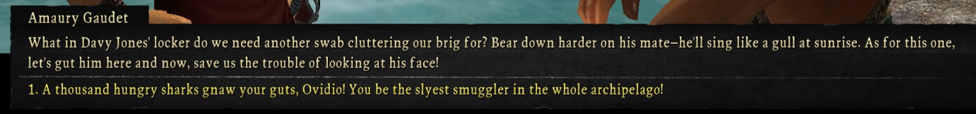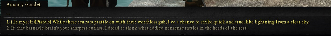 The playtest for age of pirates (remake of previous sea dogs game to caribbean legend) started today and if you start as anyone but peter blood your ship is half destroyed, you have no money, no map, minimum crew and have to slum it on your starting island trying to find tasks that wonât involve you getting ganked by 3-5 guys stronger than you. The developers said in the discord that they are trying to make the start of the game feel like Gothic. Videogames are back