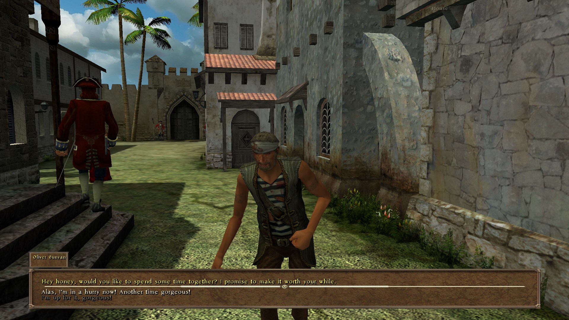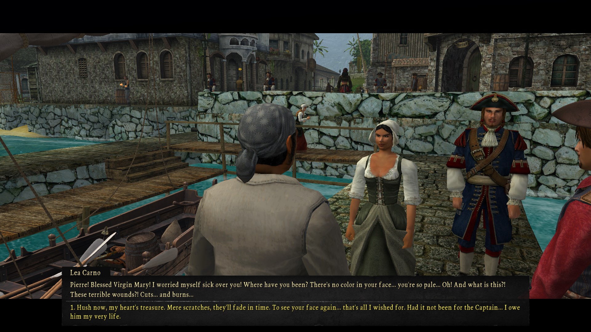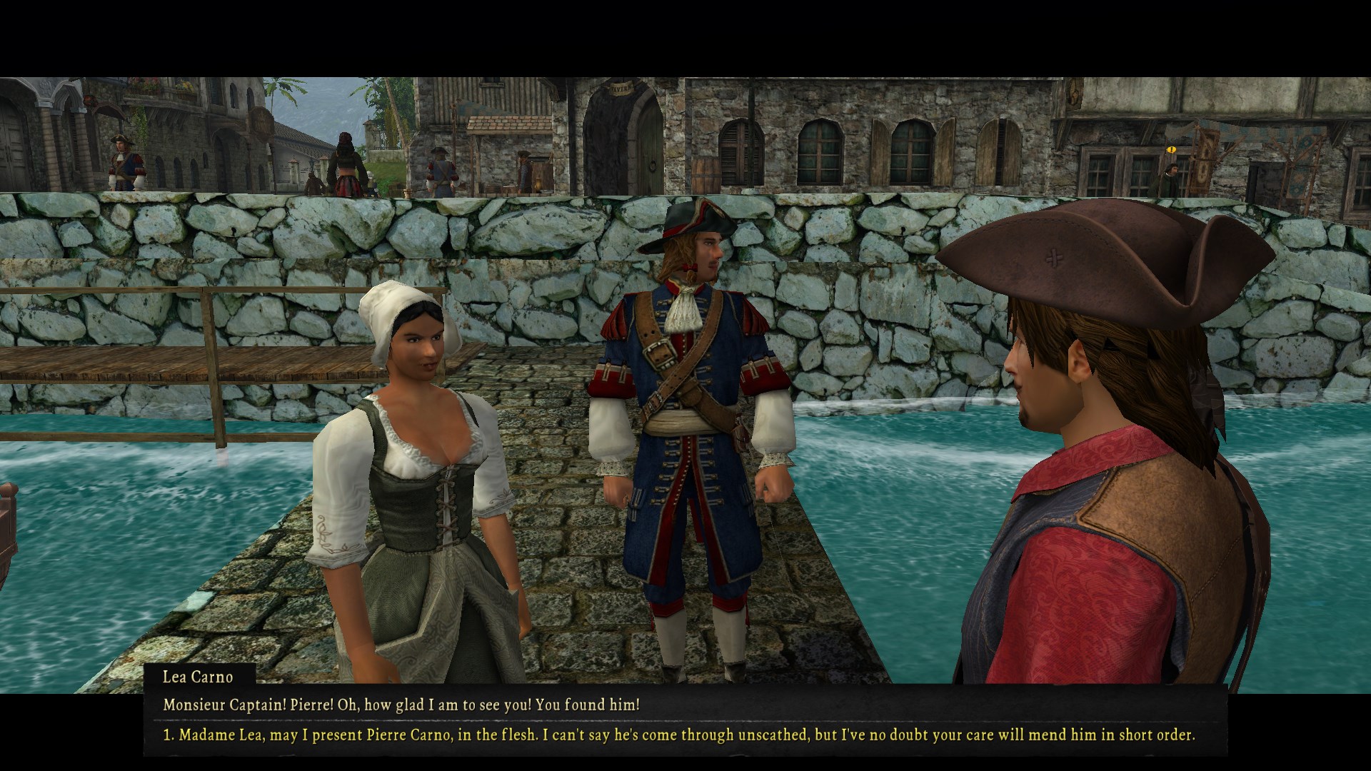 Now that we have been loosed into the Caribbean freely for like the third or fourth time in this game many of the towns now have unique, non-random side quests you can do. Last time I think I talked about returning to Fadey, so I should point out that I sailed south to St. Pierre in between now and then - this was part of my pursuit of the Lady Beth which demands its own write-up later.