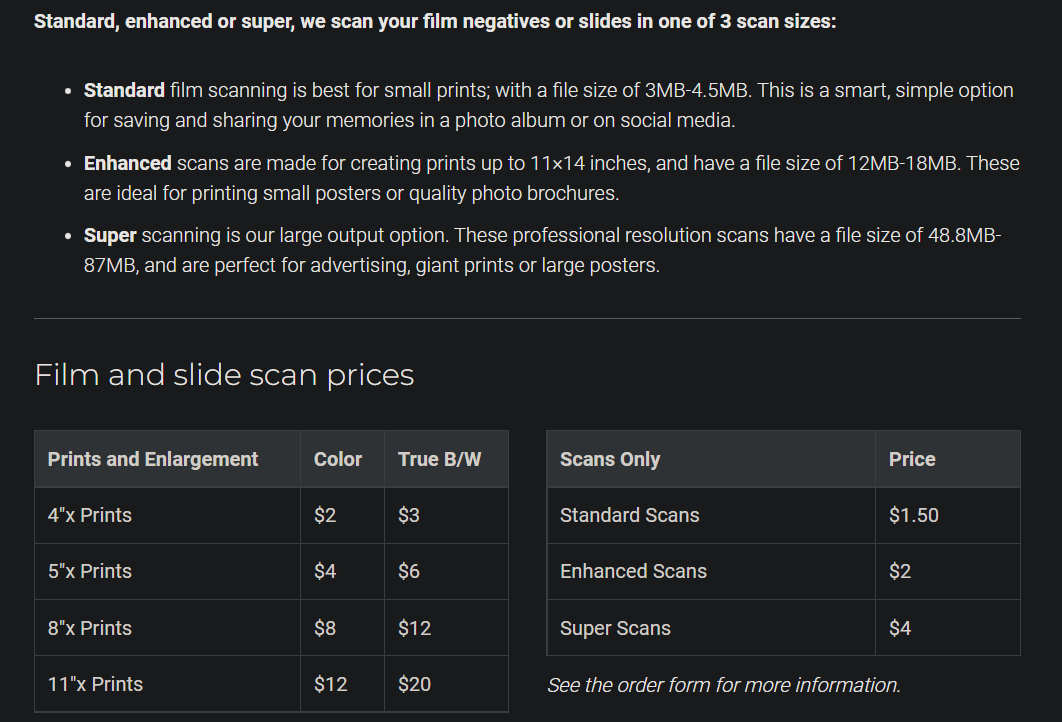 I was happy with how they turned out, I’ll use them again. Here’s some details on their scanning services for already-developed film