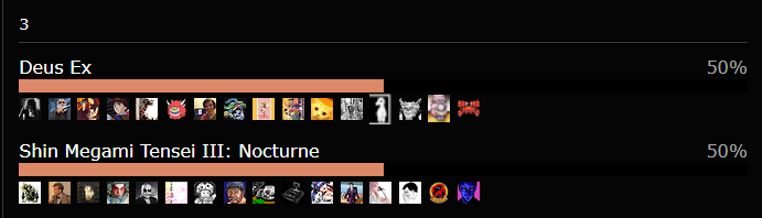 getting ready to see Deus Ex lose =(. ah well, at least it got this far to begin with.