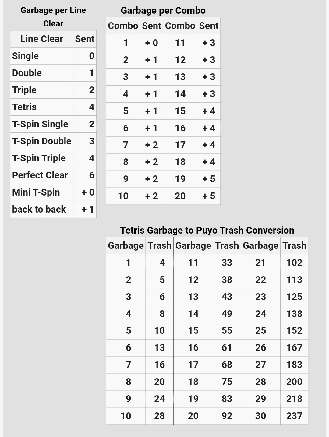 Okay, so I do know how much garbage Tetris sends. I don’t know the exact numbers that Puyo sends to Tetris, HOWEVER…