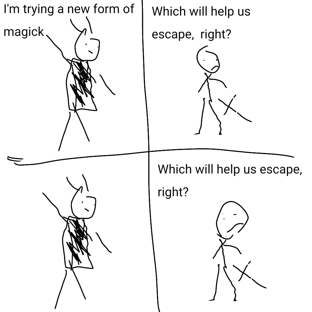 Also, meme image of Luc Anton Shea and Freddy Marus from Liber 3 which basically summarizes half the plot.