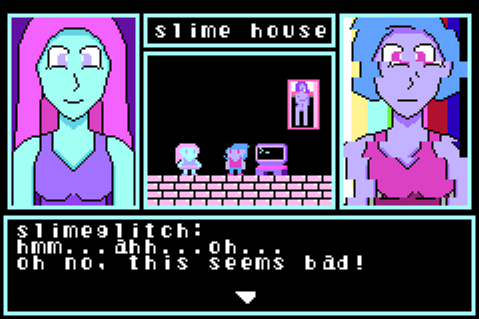 hemming and hawwing over whether or not slimegirl should have dialogue. i have decided on “yes.” also spruced up the actual dialogue scenes as well.