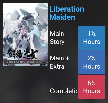can’t gorg-post rn cos i’m away from home but i did play liberation maiden and that game is stupid as heck. it’s like the same mechanical idea as kid icarus uprising but like actually feels like it was built for its control scheme rather than as a desperate measure to get that game to work (“work”) on the threeds. it’s cool! it gets a lot of respect from me for having a hltb that looks like this: