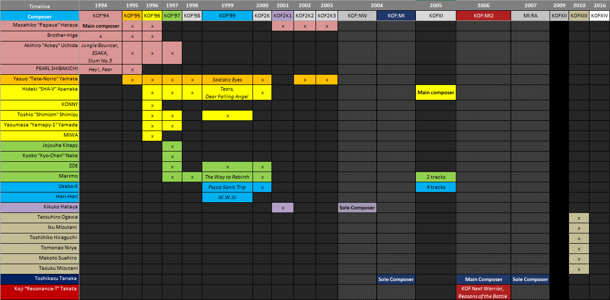 For those interested, BTW, a thing I tossed together a while back as a sampler for someone – basically all of the KOF music that particularly stands out to me, organized by theme/purpose, then chronologically.