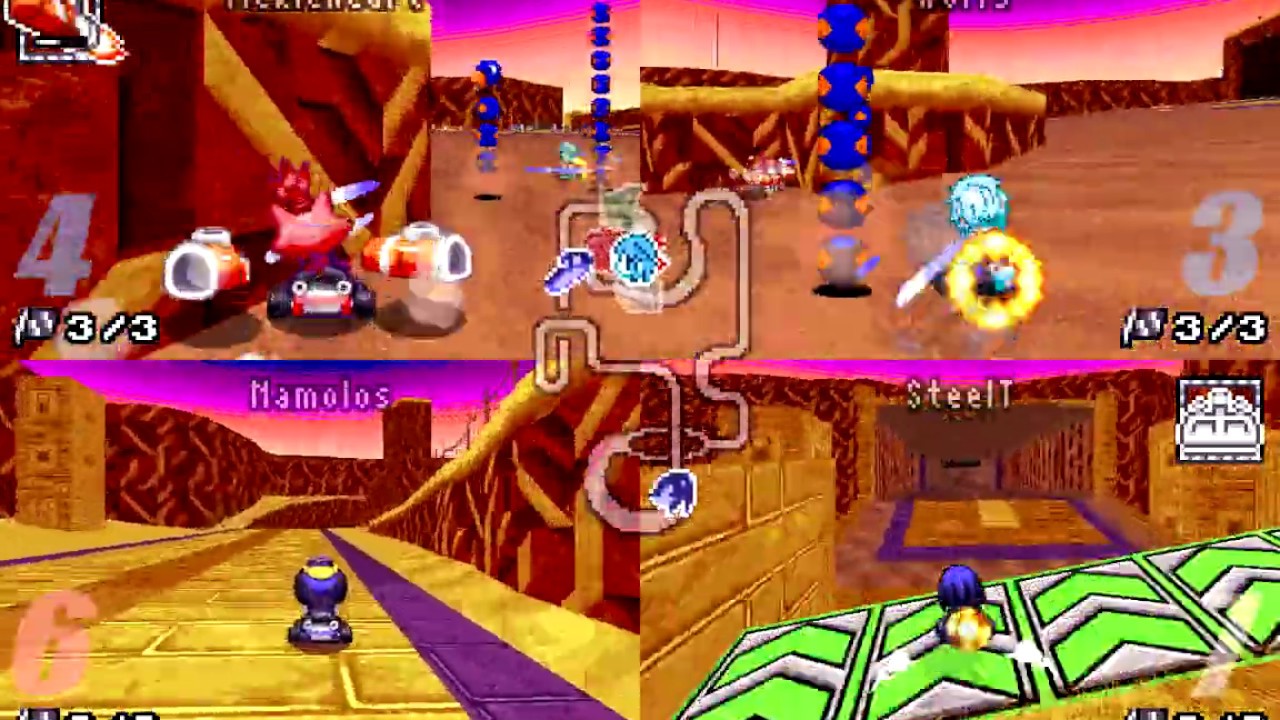 This is a snippet of a race on a public server joined by some of our development staff. Online replays are a feature coming to the game in the future, allowing you to save matches for later viewing. No longer will you be caught thinking, âI wish I was recording that sick play!â Youâll also be able to view the race from other racersâ viewpoints, with up to four views visible at once. While online replays are a ways out from being ready for public use, the game remains in active development.