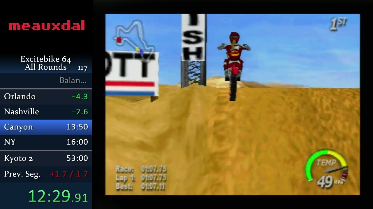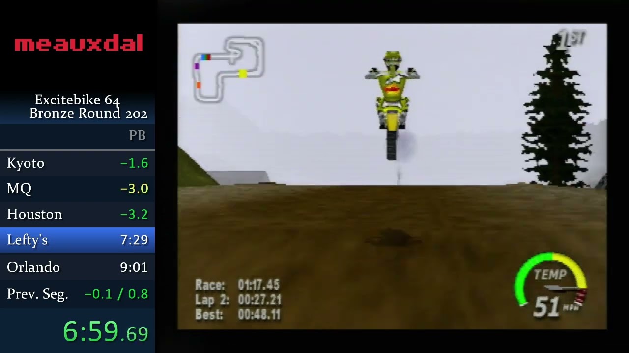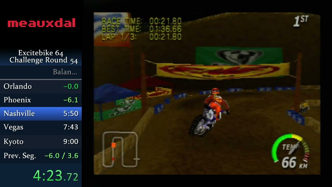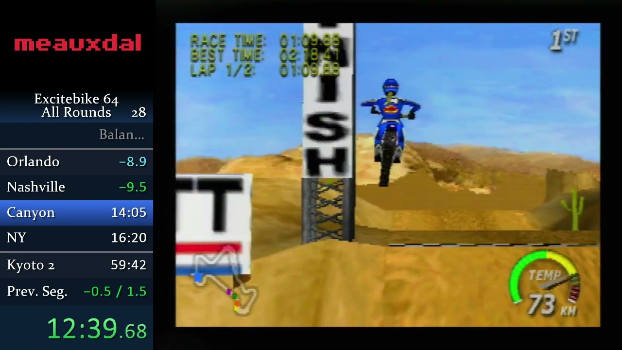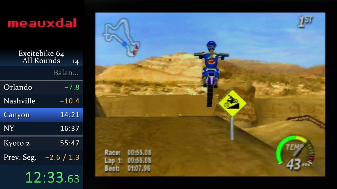 here are the leaderboards, i have the best time for some of the individual levels as well: Individual Levels - Excitebike 64 - speedrun.com