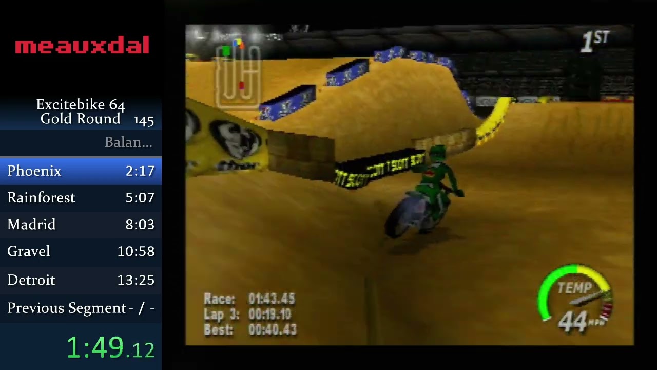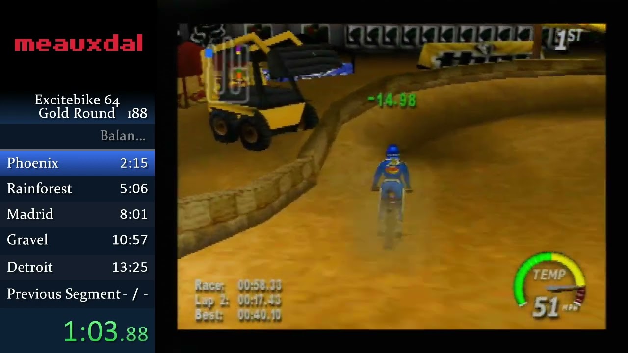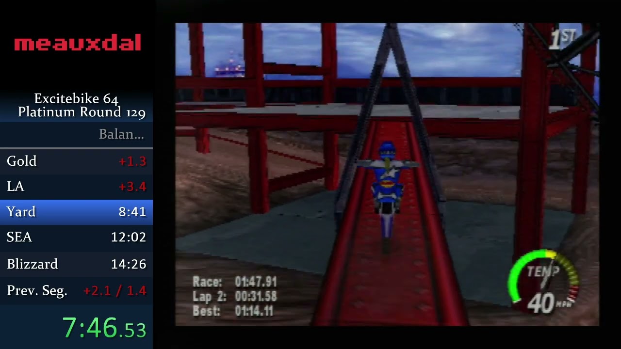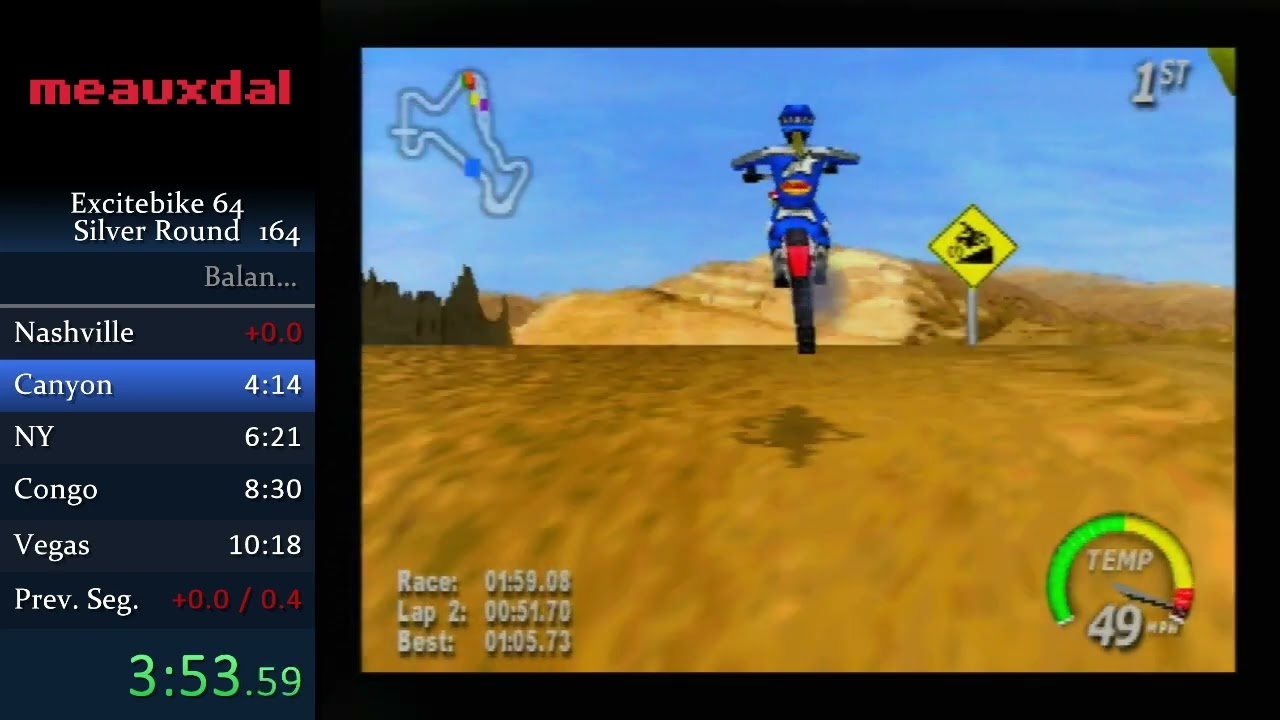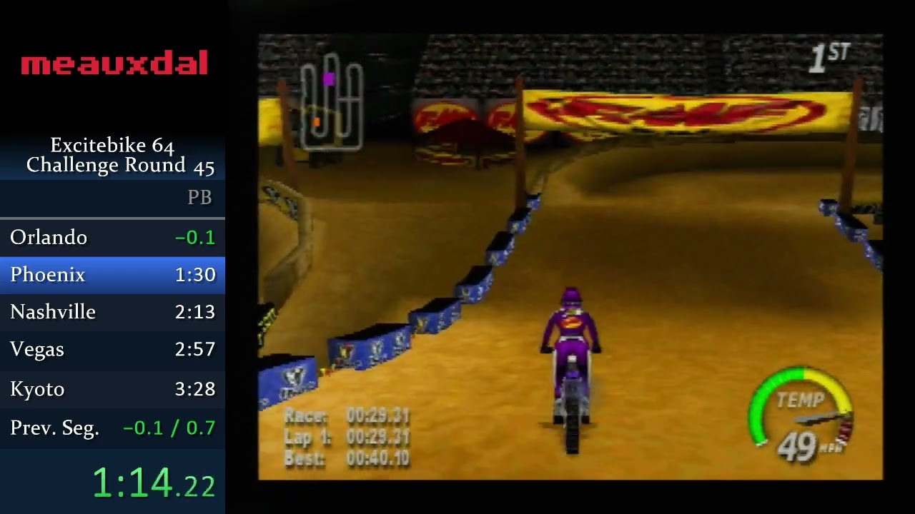 here are the leaderboards, i have the best time for some of the individual levels as well: Individual Levels - Excitebike 64 - speedrun.com