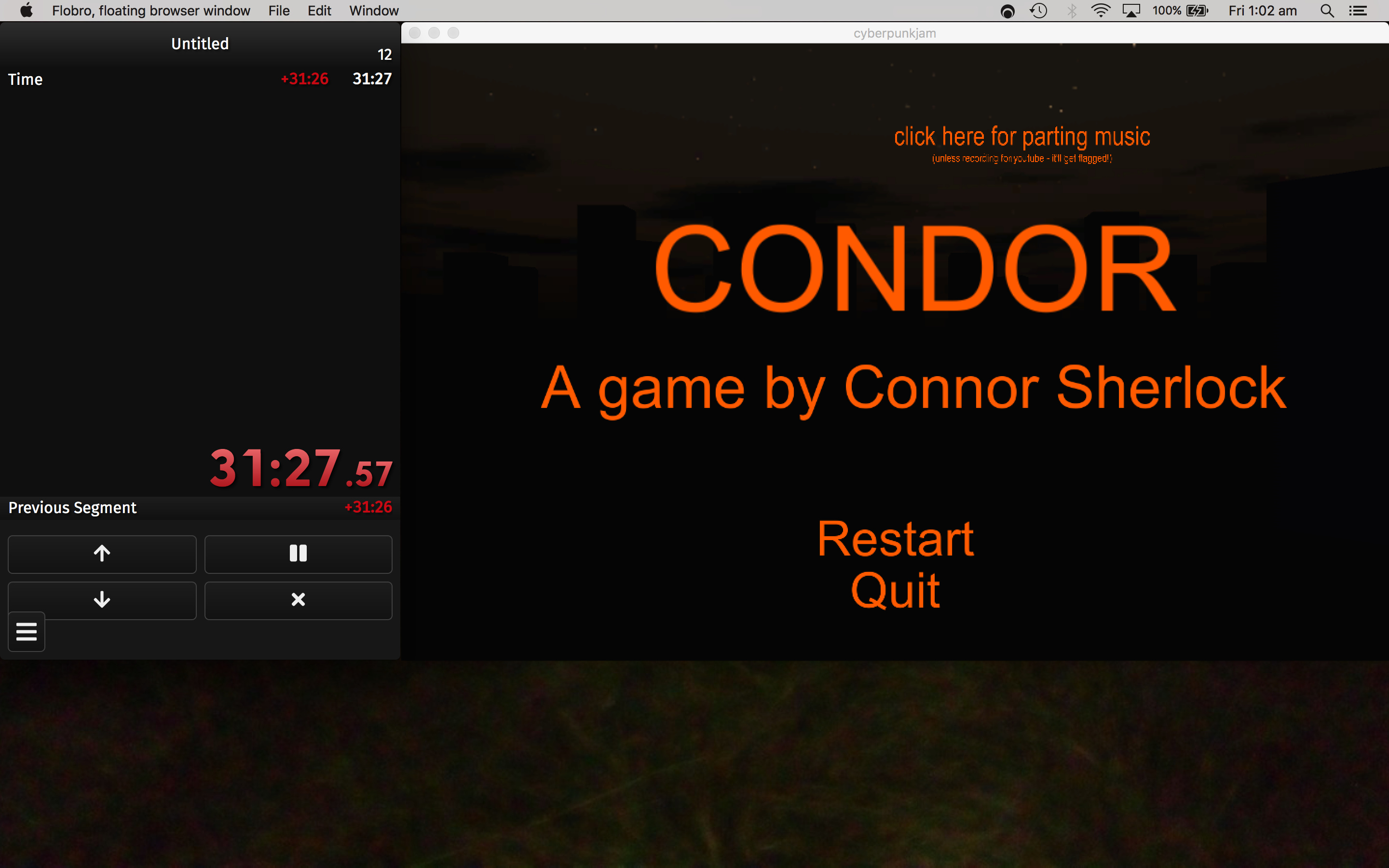 so that there’s someone to keep me accountable: i’m guna commit here to doing some indie game speedruns at some point while I’m in lock-down. I’ve already got a couple lined up but I’m guna do some more practice before i choose which to run.