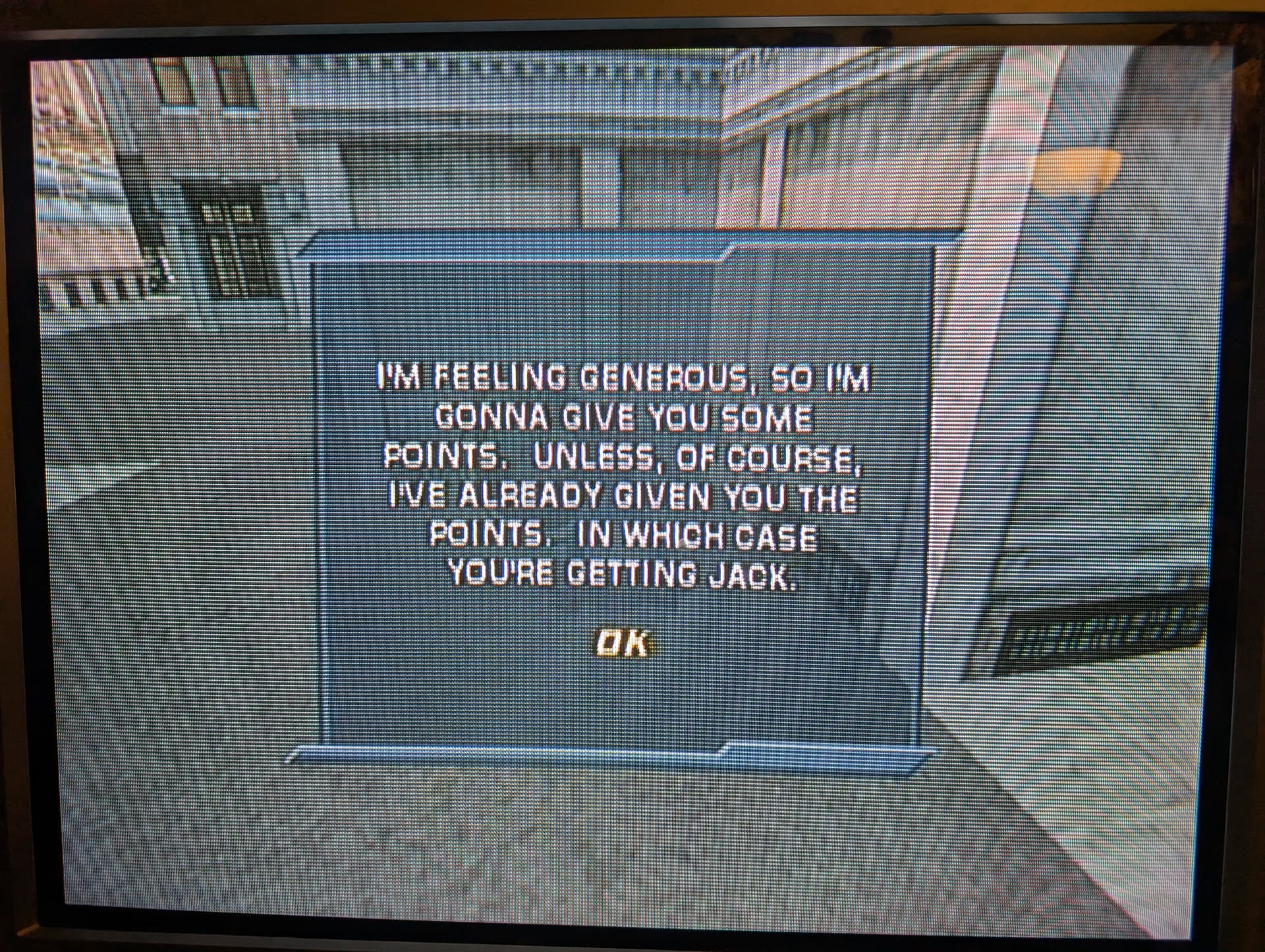 I get such heavy early 2000s vibes off this game it’s wonderful takes me back to the days of my youth like the scent of fresh lemon. I never had this game as a kid nor did anyone i knew, but playing it did remind me of back when I’d watch my siblings play garbage licensed game on the Xbox. Garbage is way too harsh though for this game as indicated ny the tier list. it’s definitely a square in the middle kinda game. There’s some weird stuff where it’s sometimes hard to make Spider-Man turn in the direction you want him to due to a weird stiffness, but it’s manageable. It really shits the bed though in the last half of the game a stellar example of which is a boss fight against a huge mech that can insta-kill you basically no matter what you do so it feels like winning is all up to chance. Really good big head mode cheat though so there’s points for that. Also I only learned this today, but my somewhat random choice of the Xbox version was a good call cause it has an exclusive level.