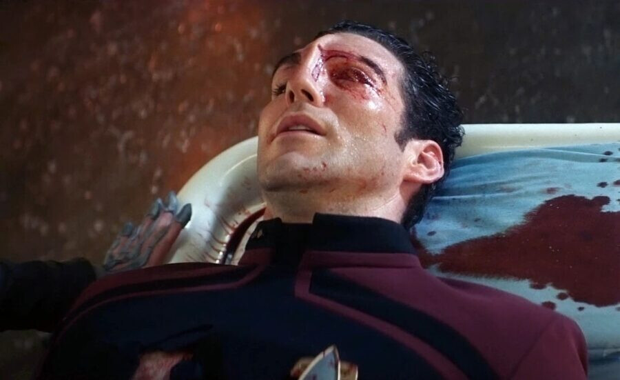 Icheb: Famously tortured to death by having his eyeball torn out of his skull, and all borg parts peeled from his body, in a gruesome cold open to an episode where Patrick Stewart puts on an eyepatch and does a goofy french accent for yuks.