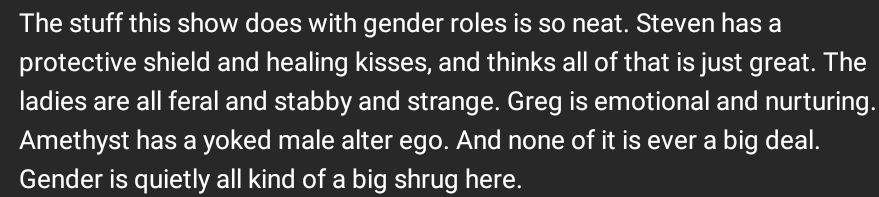 Just thinking back to the episodes, in particular that sequence of realization that Steven goes through in the second one, I keep sobbing. Like. I guess this is what catharsis is, huh.