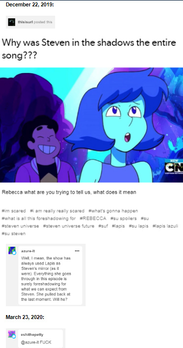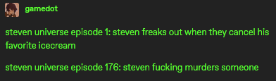 Steven Universe Future kicks so much ass lol i keep wanting to make jokes about the crewniverse stealing my fanfiction and trying to pass it off as a new show, but… it’s a series devoted to exploring the emotional fallout of a silly/melodramatic kids show. Largely made by people who did not work on the original show. And people who get that kind of fanfiction, and might have even written some themselves. It is such a unique project