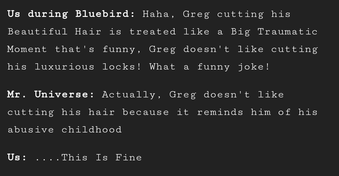 I find the Greg episode quietly way more upsetting. There’s so much going on there, and so little of it is stated.