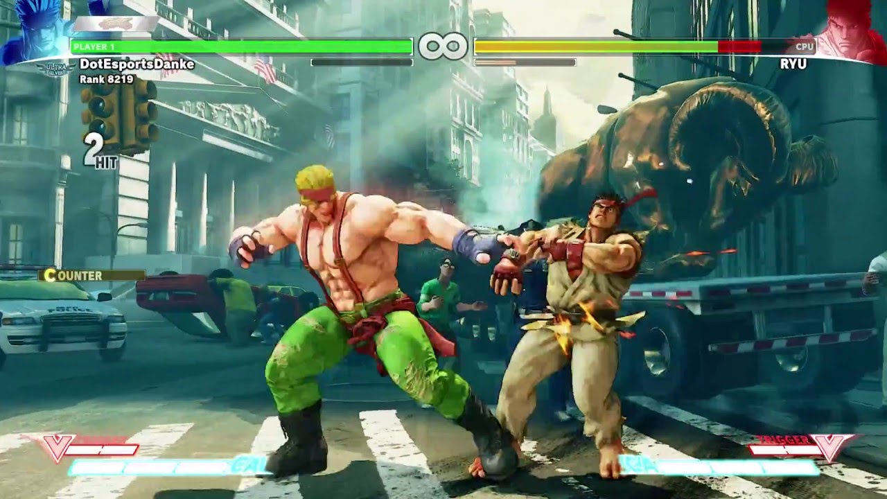 Alex’s bigger more frustrating shortcoming, in my opinion, is his real lame anti air game; also I think in general command grabs should startup faster than normal throws, but that’s a deeper issue. Stomp should hit air opponents, that would be a worthwhile buff. You gotta get a hard read real early or hope their buttons lose to s.LP, which many do not. Once the flow chart Ryu or endlessly crossing-up Nash realizes this the matches get more annoying but are not free. Pretty hard to set up any kind of mixup ground game if you can’t control the air, which is still possible to do with well timed air-to-air lights.