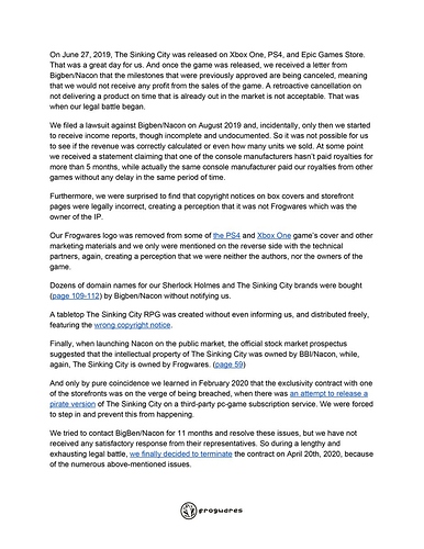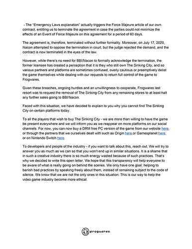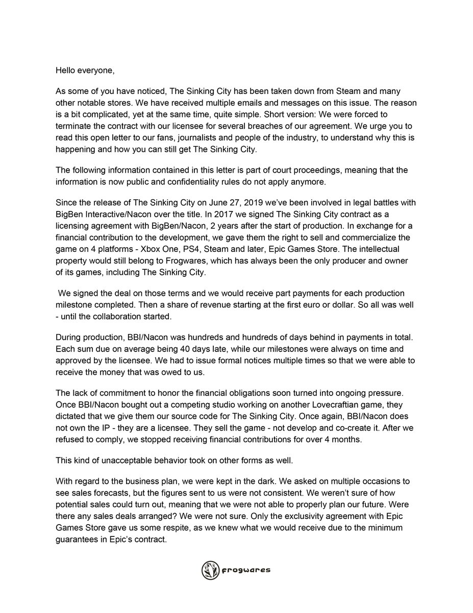 Thatâs a shame. The Sinking City is worth playing. Hope they get compensated and the game can be distributed again sometime.