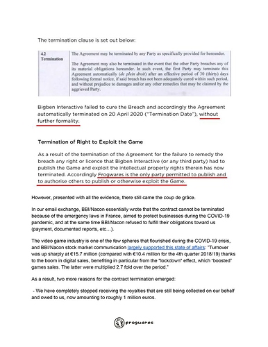 Egregious breach of contract by a licensee, that attempted to use their home country of France emergency laws aimed to protect businesses (which video games werenât in danger of going under) to prevent termination.