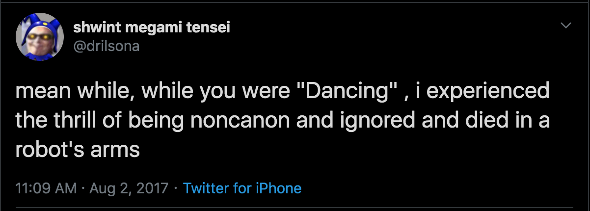 On a more serious note though I wonder if Nocturne ever got a an actual port somewhere if they’d use the Dante version or spend the effort to localise the Raidou version.
