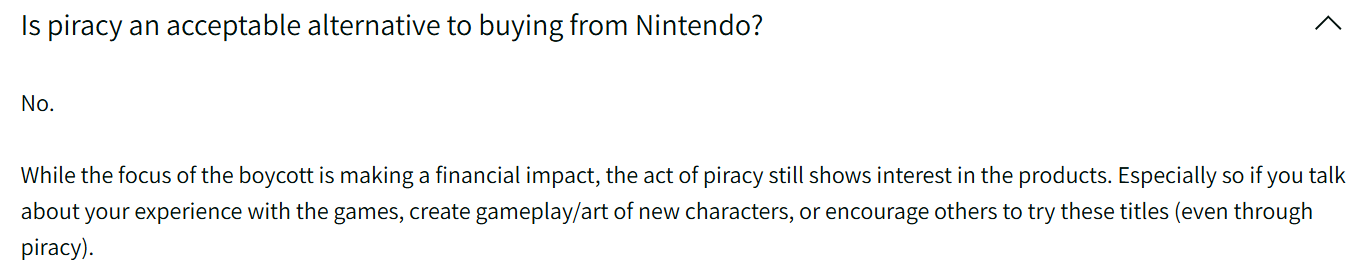 Their FAQ says that piracy is not a viable alternative to buying Nintendo games, but…