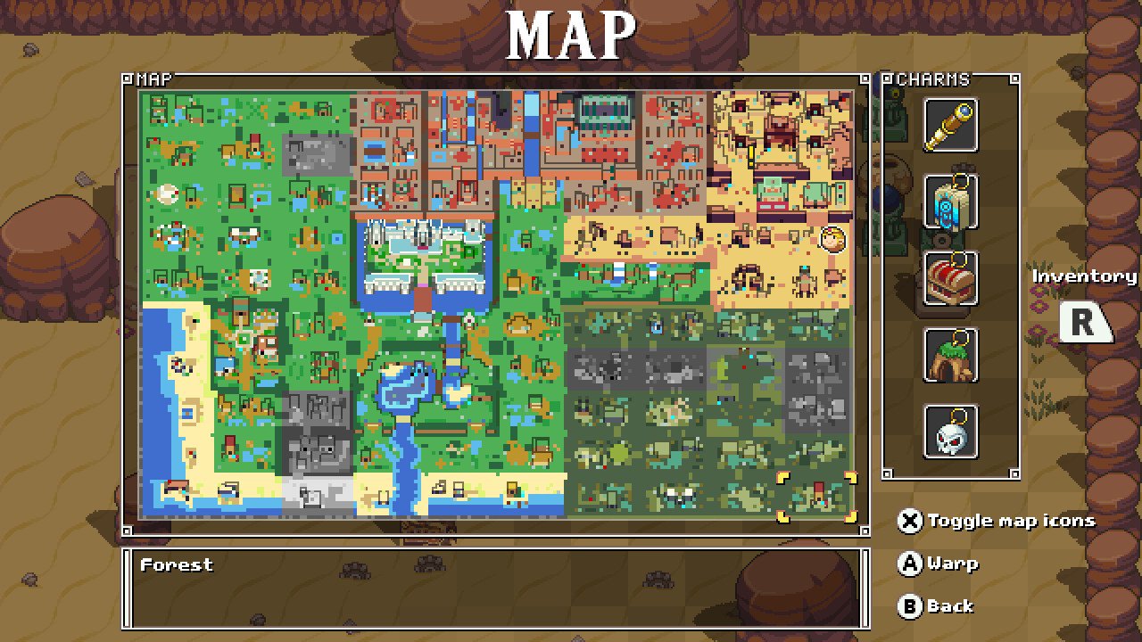 This game is pretty heavily inspired by the NES Zelda. I say this because they made a lot of the same design decisions I made when I tried to make a randomized NES Zelda. Like the original Zelda, they try to put a shop, cave, or other secret on nearly every screen.