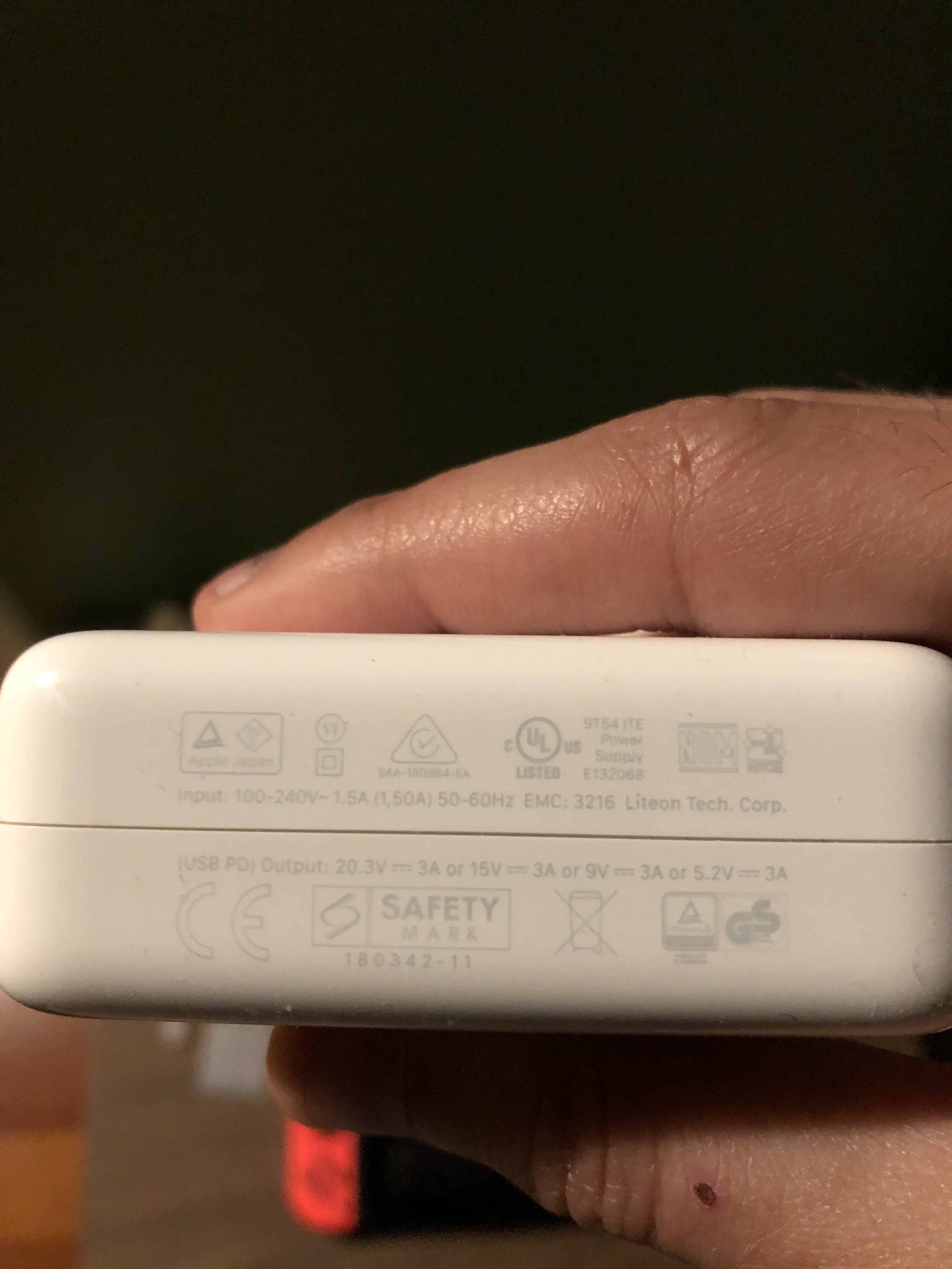 FYI the MacBook chargers only charge the Switch at 5W (I.e. overnight needed for full charge, may not keep up with a demanding game if charging while playing) because they push 5V/9V/20V whereas the Switch pulls 5V/15V .