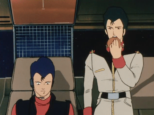 I forgot to mention we’re watching a Gundam about hamburgers.