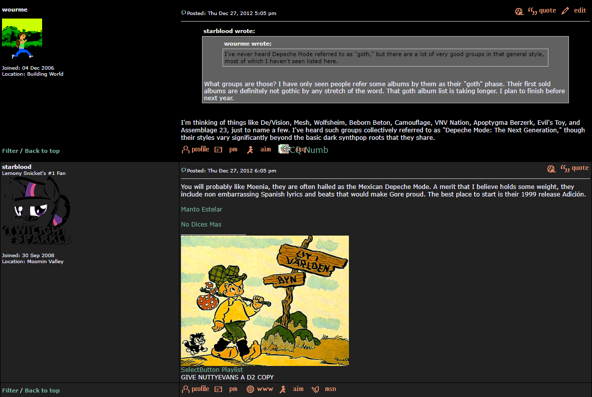 I randomly looked at an old SB thread with some music talk and discovered that it was starblood who first recommended Moenia to me. Not too surprising, I guess, but something I had forgotten. I’ve listened to them a lot since then.