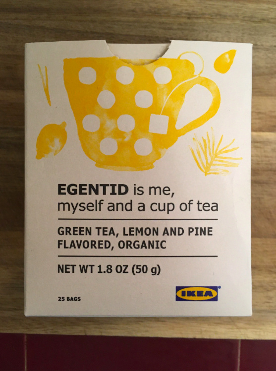 I go to Ikea all the time. I am an Ikea enthusiast. Like for many other things, I may be judged but cannot be stopped. Anyway I got this box of tea because it had the word “PINE” on it as a flavor. Also the box is a nice uncoated stock. This box cost $4 and there are 25 bags. Hard to argue with that. How would you even begin?