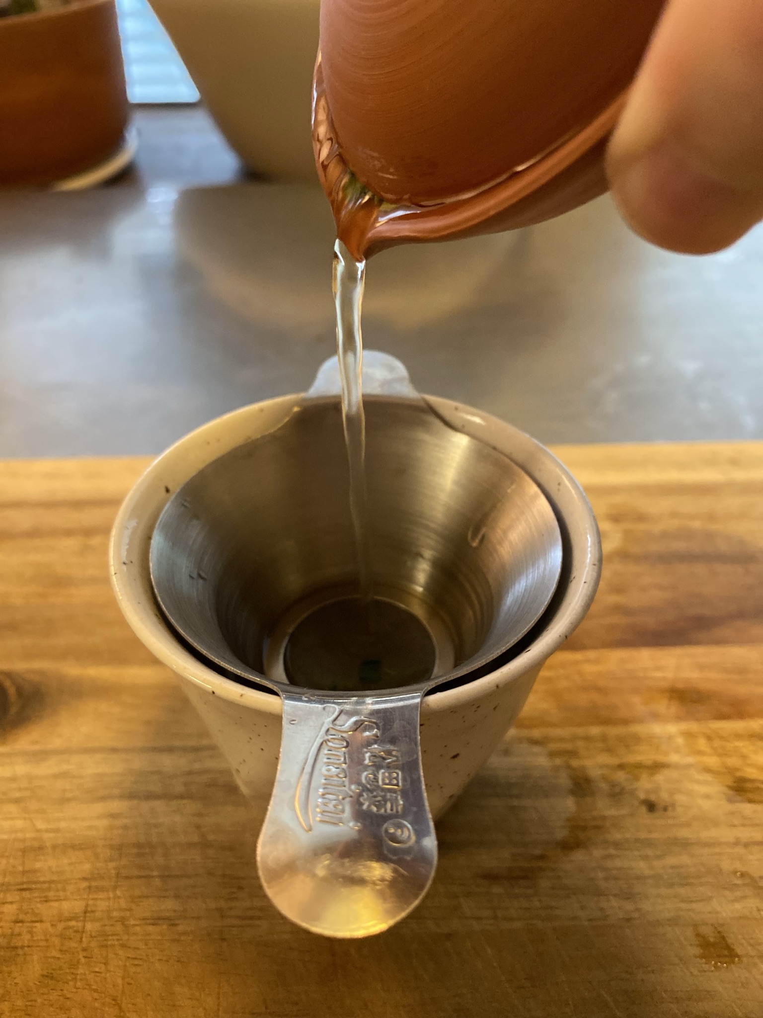 Here I did 3 infusions, each at about 30-40s at 170f, mixed into the same cup. You get, say, 50-55ml of juice out of the tiny shibo per pour, usually I’ll drink one’s worth a couple times a week, keep caffeine intake low, but today is special, today is 150ml big gulp day.