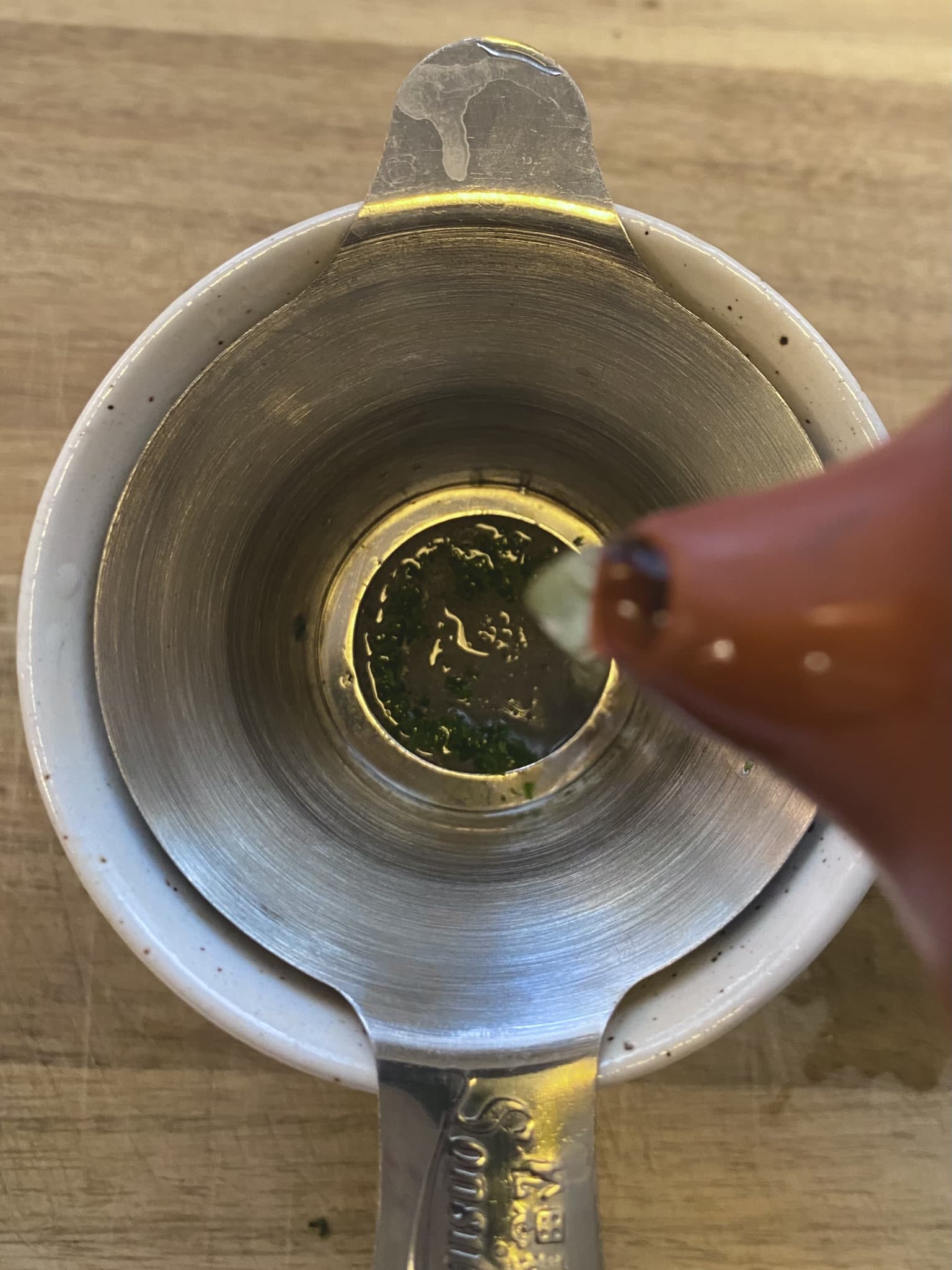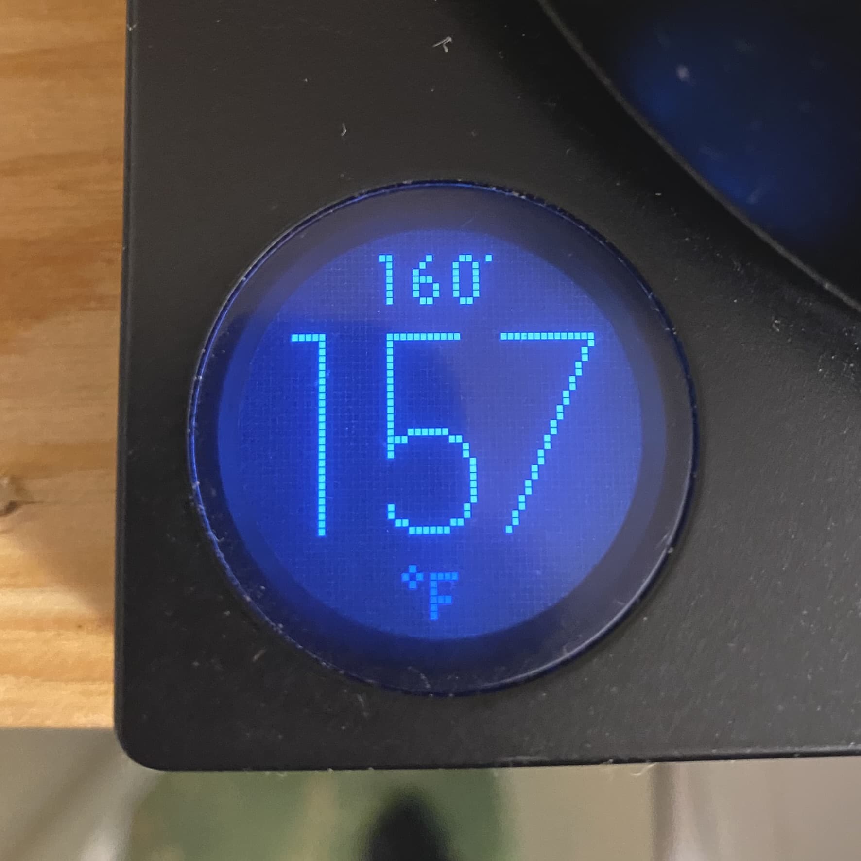 After shaking the tea around for a little while in the still-moist pre-heated teapot (this is when you want to sniff some whiffs prime leaf whiff time), I’ve been brewing a single infusion at 160F-ish for around 1 minute.